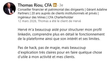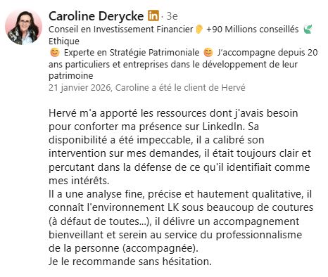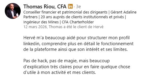 ✅ Un accompagnement sur mesure (diagnostic, refonte du profil, stratégie de publication, analyse des performances).