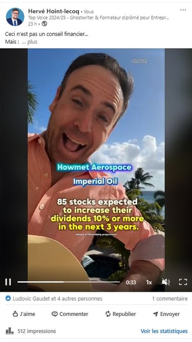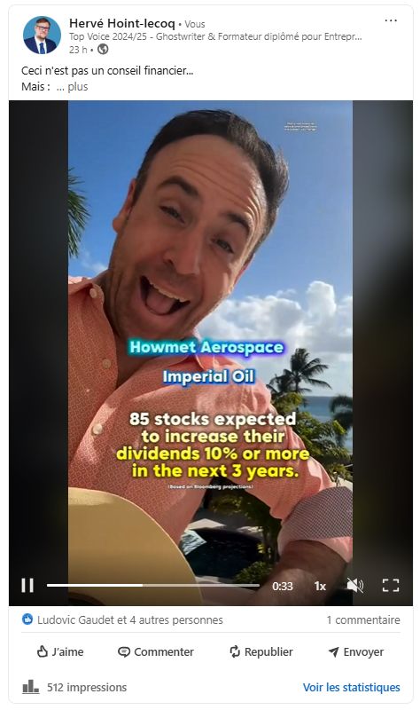 2è post, une vidéo sur des actions qui allaient rapporter en 2026 sur une musique rigolote avec un homme qui danse (grosse valeur ça !! AHAHAHA)
